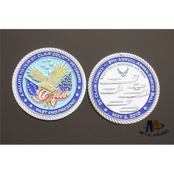 Challenge coin made by Zinc alloy material, size is 38.1MM and thickness is 3MM both size